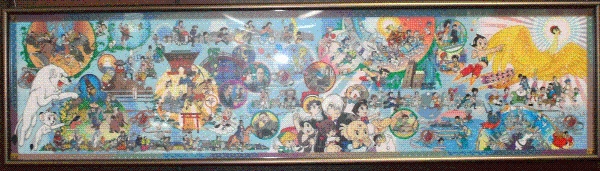 鉄腕アトムをはじめとするキャラクターの壁画。